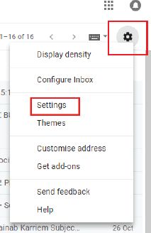 1.Click the Settings gear icon near the top right corner of the Gmail screen.