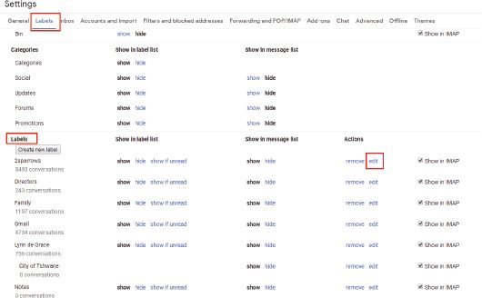 1.In the section of the Labels tab, click Edit in the Actions column for the label you want to move.