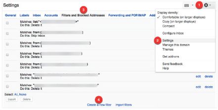 Filters help you to set up rules for how Gmail should handle your incoming emails, for example it can send an email to a label, or it can archive, delete, star or automatically forward the email.