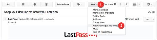 You can also filter specific messages by opening the email, clicking the More button and selecting Filter messages like these.