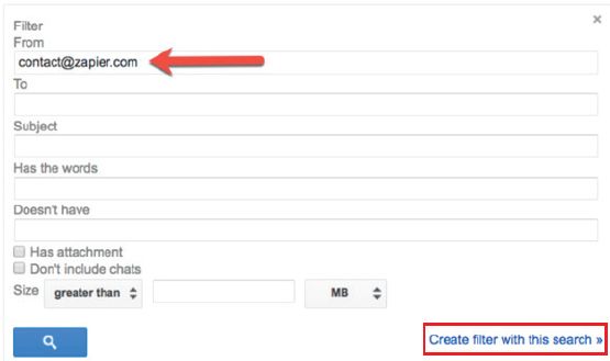 6.After selecting the criteria for your filter, click the Create filter with this search link to specify what Gmail must do with emails that match this filter.