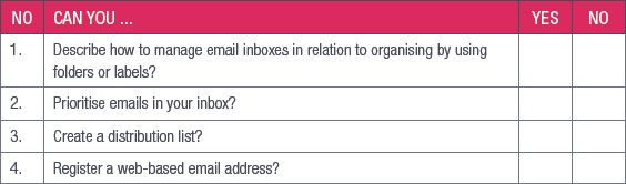 - Describe how to manage email inboxes in relation to organising by using folders or labels