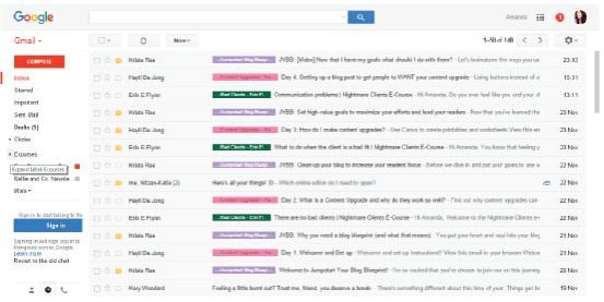 Labels are a great way to organise Gmail. They are like tags you can add to emails you send or receive. Unlike folders, you can add more than one label to an email. You can also colour-code these labels to make it easier to see into which category an email falls.