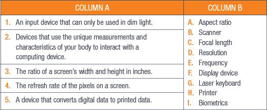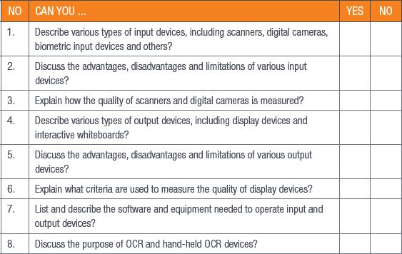 - Describe various types of input devices, including scanners, digital cameras, biometric input devices and others