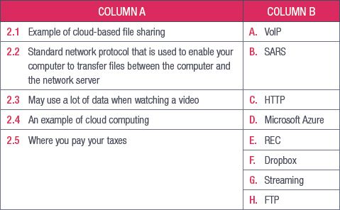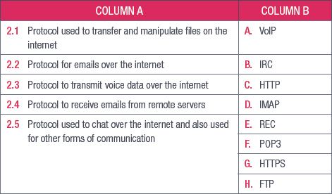 2.Choose a term or concept from Column B that matches the description in Column A. Write only the letter next to the question number.