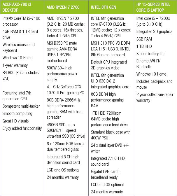 e.Tokozile expects that some of her customers will want to play games on the computers. Advise her on which computer (according to the quotations) would be best for games and why.