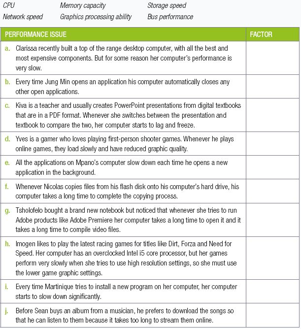 | Unit 3.2 | Factors influencing performance of a computer |