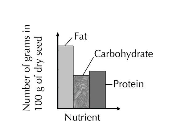 The following histogram shows the different amounts of nutrients found in one of the four seeds.