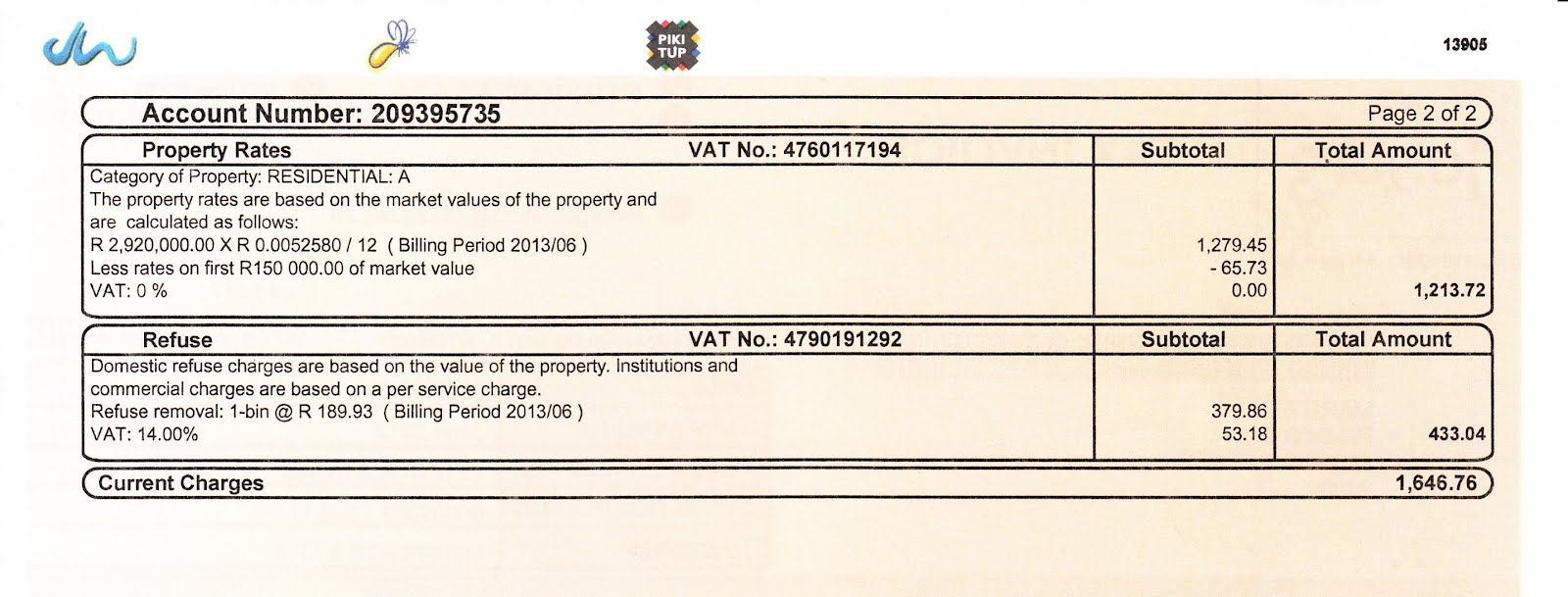 Simon gets the following municipal bill for his property rates and refuse removal.