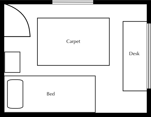 The teacher wants to replace the checkered rug. Calculate how big the new rug must be in m\(^{\text{2}}\).