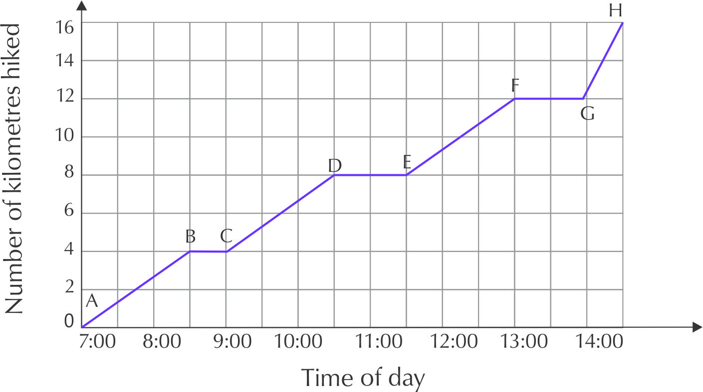 Lindi and Thabang went on a day hike and drew this graph to show their progress.