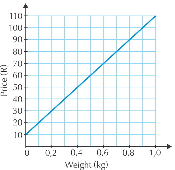 Nicola buys biltong in fancy packaging as a present for her dad. Look at this graph of the price of biltong per weight.