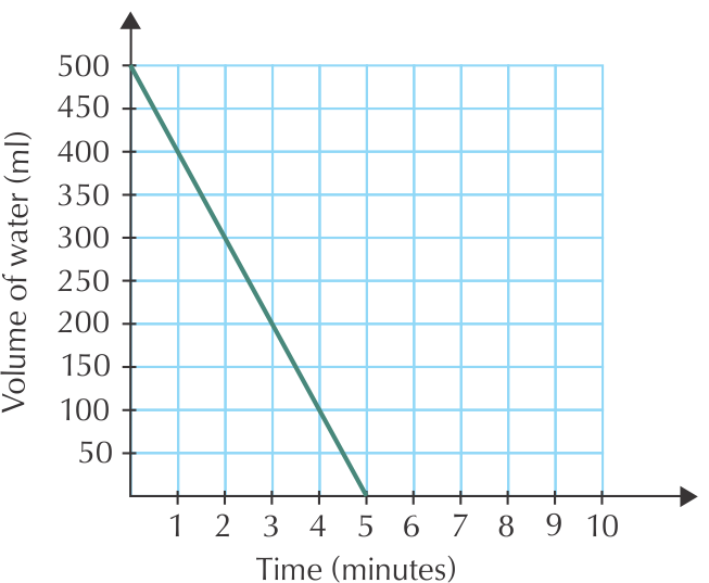 Tumelo empties his 500 ml water bottle at a constant rate.