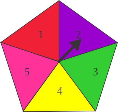 Look at the five-sided spinner shown in the diagram. When we spin the arrow, it has an equal chance of landing in each triangle, because they are all the same size.