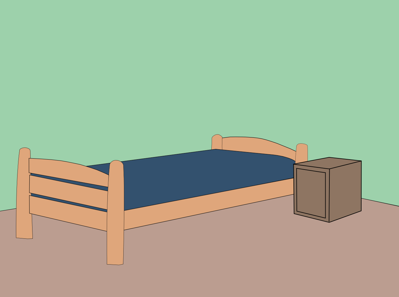The bedroom in the picture is \(\text{3,5}\) \(\text{m}\) by \(\text{4}\) \(\text{m}\). It has a standard sized single bed of \(\text{92}\) \(\text{cm}\) by \(\text{188}\) \(\text{cm}\). The bedside table is \(\text{400}\) \(\text{mm}\) square. Draw a floor plan to show the layout of the room. Use the number scale \(\text{1}\) : \(\text{50}\).