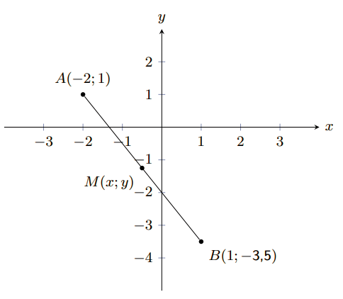 The mid-point is at \(M\left(-\text{0,5};-\text{1,25}\right)\).