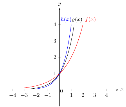 Complete the following table for each of the functions and draw the graphs on the same system of axes: \(f(x)={2}^{x}\), \(g(x)={3}^{x}\), \(h(x)={5}^{x}\).
