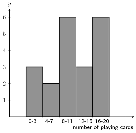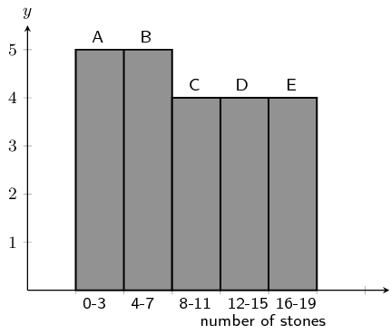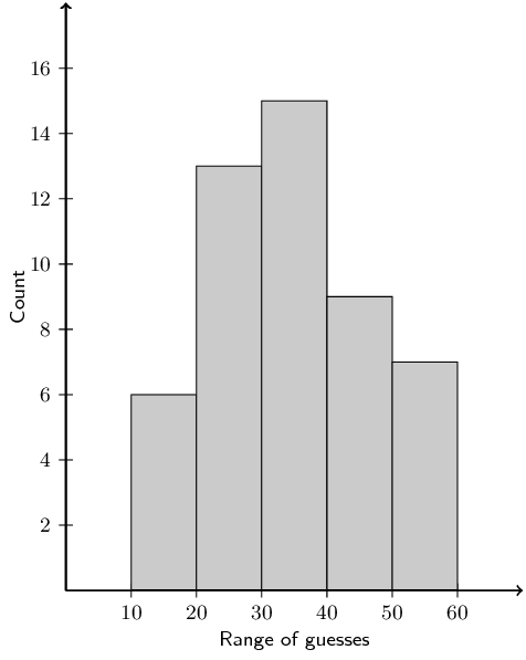 Mean: \(\text{52}\); Modal group: \(50 <m \le 55\); Median group: \(50 < m \le 55\).
