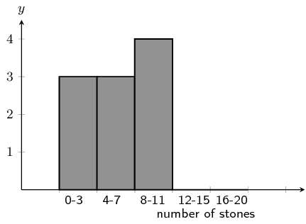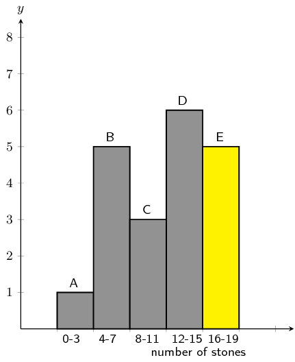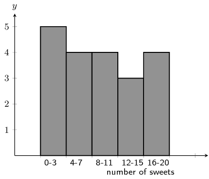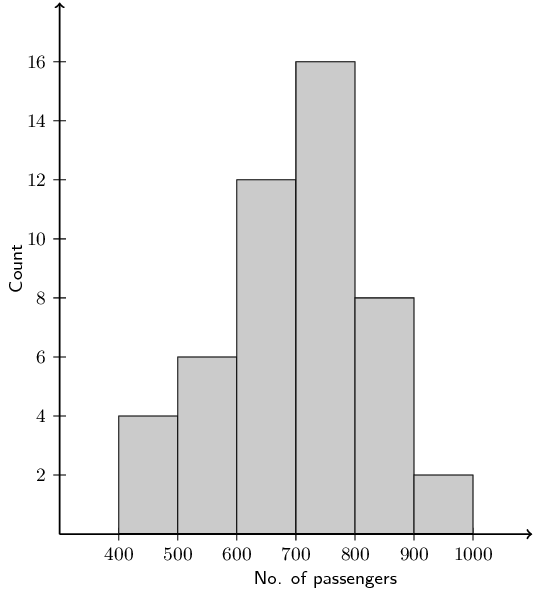 The modal group is the group with the highest number of data values. This is \(50 <m \le 55\) with