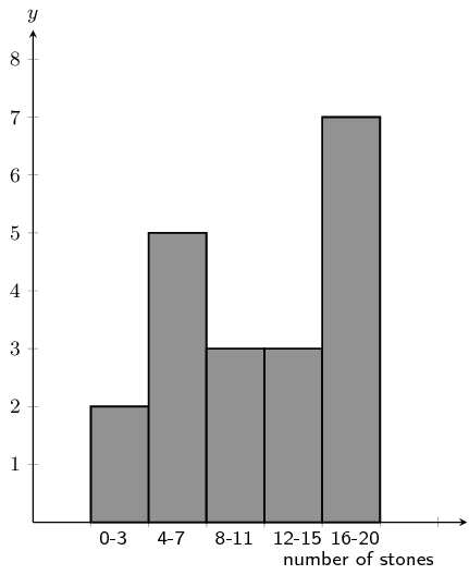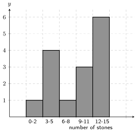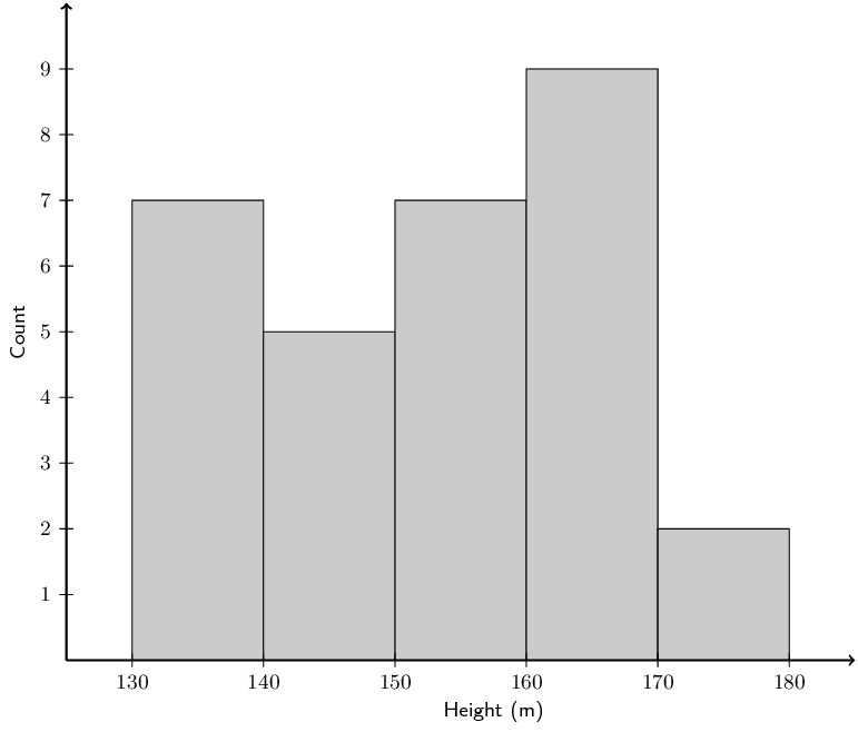 The modal group is the group with the highest number of data values. This is \(65 <m \le 75\) with