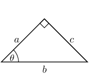 - \(\cos \theta = \frac{\text{adjacent}}{\text{hypotenuse}}\)