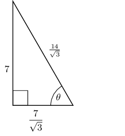 \begin{align*} \tan{(90^{\circ}- \theta)} = \frac{3}{\sqrt{55}} \end{align*}The value of \(\theta\)