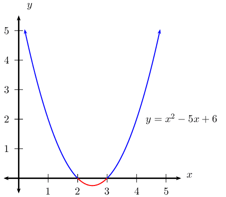 \(x\)-axis. The graph lies above the \(x\)-axis and so