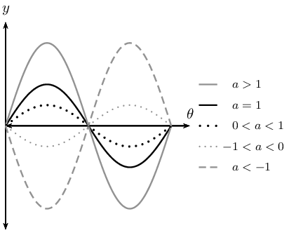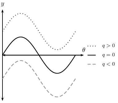 The effects of \(a\) and \(q\) on \(f(\theta) = a \sin \theta + q\):
