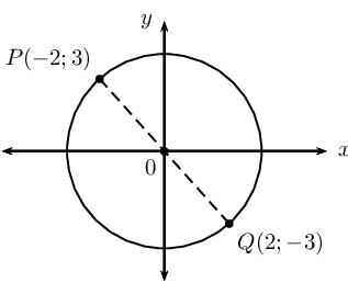 If \(PQ\) is a diameter of the circle, then point \(Q\) must lie opposite point \(P\) on the circumference of the circle. Using symmetry about the origin, the coordinates of point \(Q\) are \((2;-3)\).