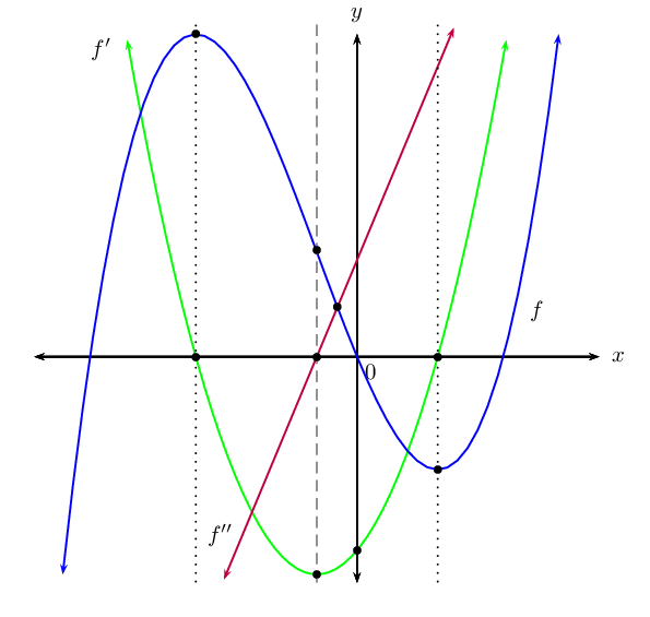 For the turning points, let \(f'(x)=0\).