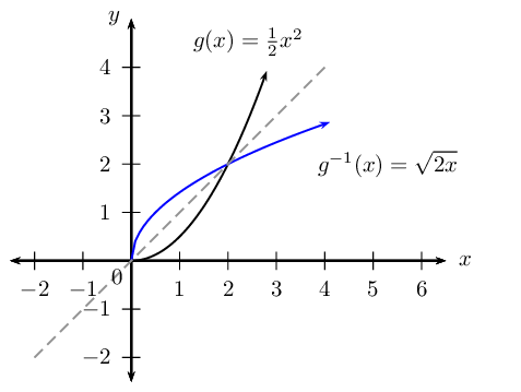 Option \(\text{1}\): Restrict the domain of \(q\) to \(x \ge 0\) so that the inverse will also be a function \(\left( q^{-1} \right)\). The restriction \(x \ge 0\) on the domain of \(q\) will restrict the range of \(q^{-1}\) such that \(y \ge 0\).