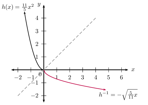 Option \(\text{2}\): Restrict the domain of \(h\) to \(x \le 0\) so that the inverse will also be a function \(\left( h^{-1} \right)\). The restriction \(x \le 0\) on the domain of \(h\) will restrict the range of \(h^{-1}\) such that \(y \le 0\).