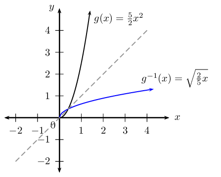 Given: \(g(x) = \frac{5}{2}x^{2}, \enspace x \ge 0\).