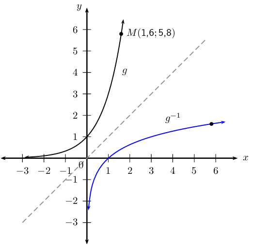 Given \(g\left(x\right)= t^{x}\) with \(M\left(1\frac{3}{5} ; 5\frac{4}{5}\right)\) a point on the graph of \(g\).