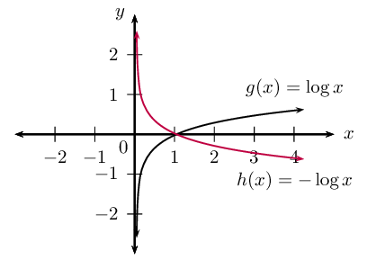 \begin{align*} \text{Given } g(x) & = \log_{10}{x} \\ \therefore h(x) & = - \log_{10}{x} \\ \text{Let } y & = - \log_{10}{x} \\ -y & = \log_{10}{x} \\ \therefore 10^{-y} & = x \\ \left( \frac{1}{10} \right)^{y} & = x \\ \therefore y & = \log_{\frac{1}{10}}{x} \\ \therefore h(x) & = - \log_{10}{x} = \log_{\frac{1}{10}}{x} \end{align*}General conclusion