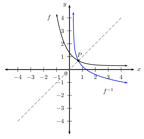 Label \(P\), the point of intersection of \(f\) and \(f^{-1}\).