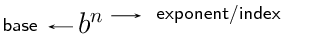 \[\begin{array}{rll} \text{Restriction:}& & \text{Reason: } \\ & & \\ b > 0 & & \text{If } b \text{ is a negative number, then } b^{y} \text{ will oscillate between:} \\ & & \text{positive values if } y \text{ is even } \\ & & \text{negative values if } y \text{ is odd } \\ & & \\ b \ne 1 & & \text{Since } 1^{\text{(any value)}} = 1 \\ & & \\ x > 0 & & \text{Since } \text{(positive number)}^{\text{(any value)}} > 0 \end{array}\]Exponential and logarithmic form