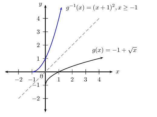 Give the domain and range of \(g^{-1}\).