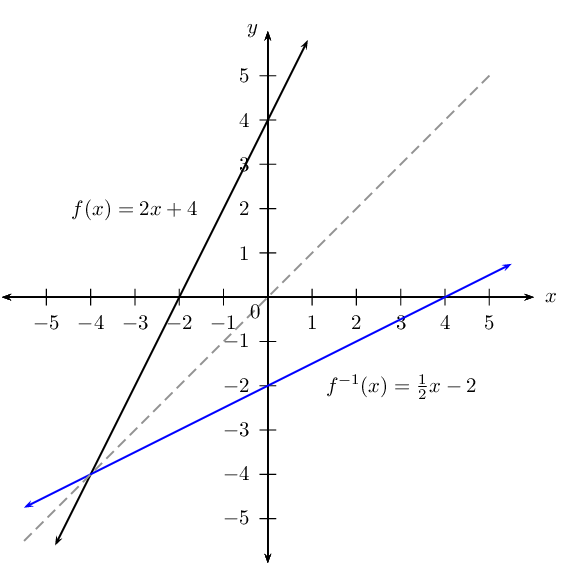 The inverse of a function is \(f^{-1}(x) = 2x + 4\).