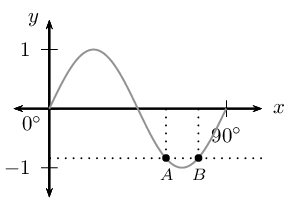 \(A( \text{59,26}°; -\text{0,84}),B( \text{75,74}°; -\text{0,84})\)