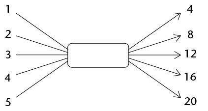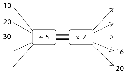 A relationship between two quantities can be shown with a flow diagram. In a flow diagram we cannot show all the numbers, so we show only some.