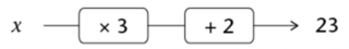 Consider the equation, \(3x + 2 = 23\).