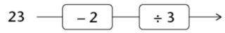 When you reverse the process in the flow diagram, you start with the output number \(23\), then subtract \(2\) and then divide the answer by \(3\):