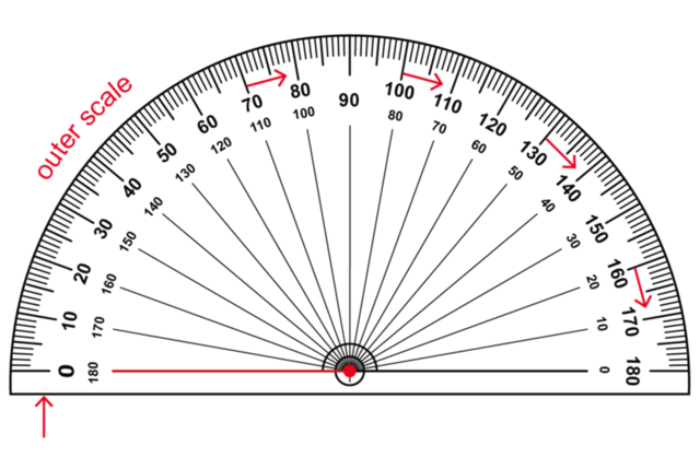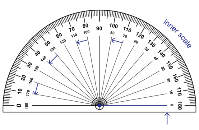 If you begin measuring from the zero on the right hand side of the protractor, you use the inner scale on the protractor.