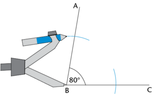 Use a compass to bisect angle \(A\hat{B}C = 80^{\circ}\).