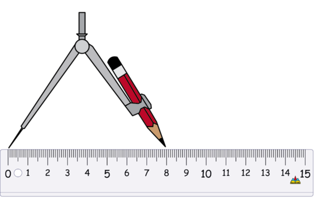 Draw a line segment (longer than \(8 \text{ cm}\)) and mark point \(B\). Use the compass to measure a length of \(8 \text{ cm}\) on your ruler.