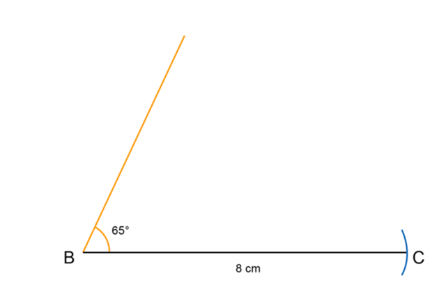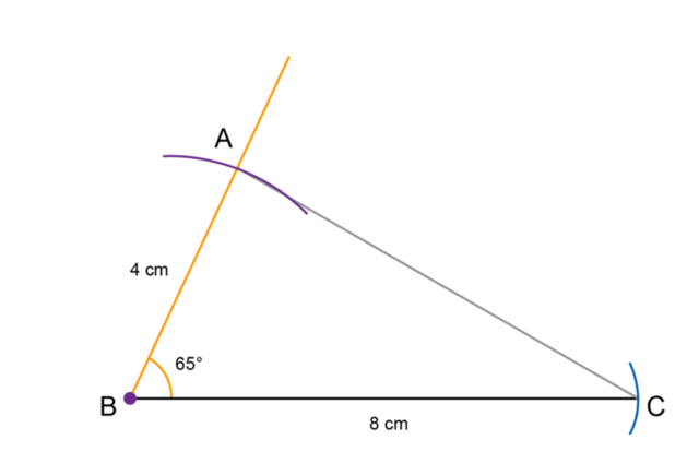 Construct \(\triangle ABC\) with \(AB = 4 \text{ cm}\), \(A\hat{B}C = 65^{\circ}\) and \(BC = 8 \text{ cm}\). You may use a protractor for this construction.