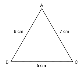 - \(\triangle ABC\) with sides \(AB = 6 \text{ cm}\), \(BC = 7 \text{ cm}\) and \(CA = 4 \text{ cm}\).
