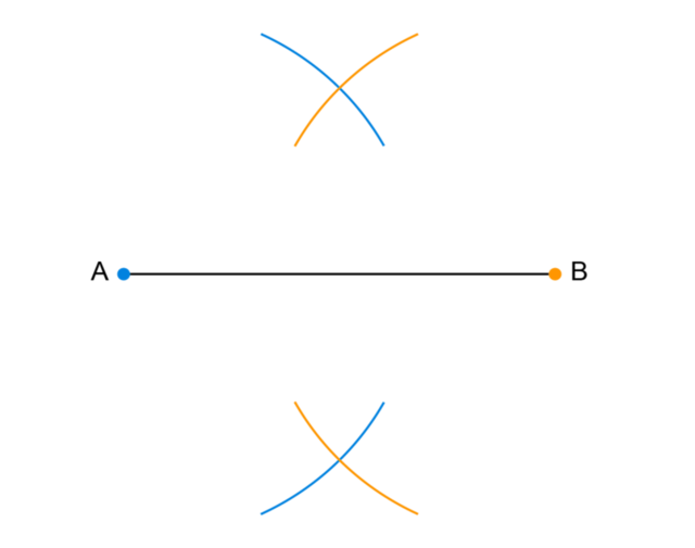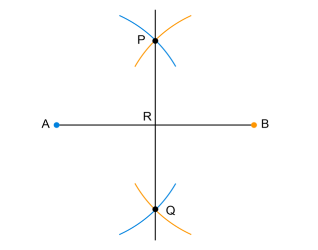 - Construct the perpendicular bisector of \(AB\).