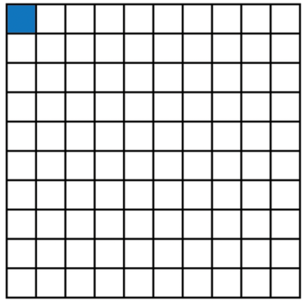 block of squares is divided into \(100\) parts.